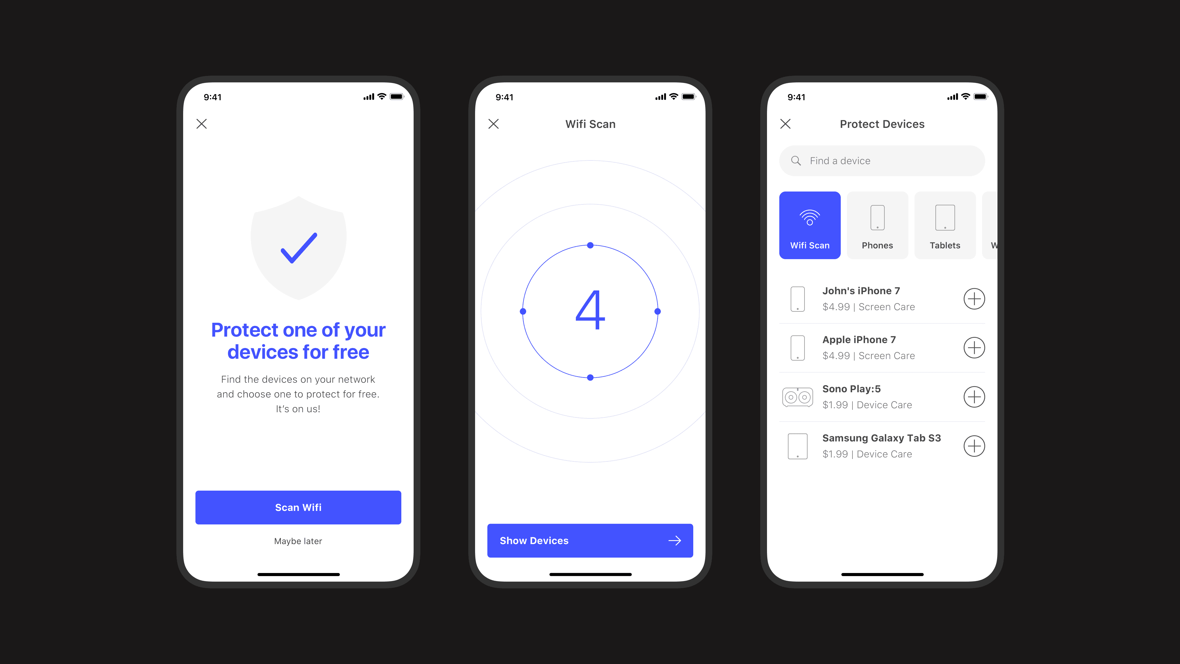 TapSafe reframes device protection as a simple monthly subscription. The app acts as a central place to manage coverage, track expiry dates, and handle support and claims for all connected devices in one place. The project focused on reducing friction at moments of failure, clarifying coverage status, and designing a system that feels approachable and trustworthy for non-technical users.